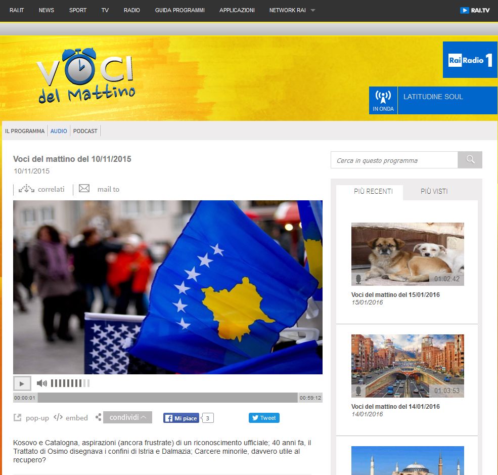 Intervista a Francesco Martino sul voto contrario all'adesione del Kosovo all'Unesco, alla trasmissione "Voci del mattino", Radio Rai1 10/11/2015