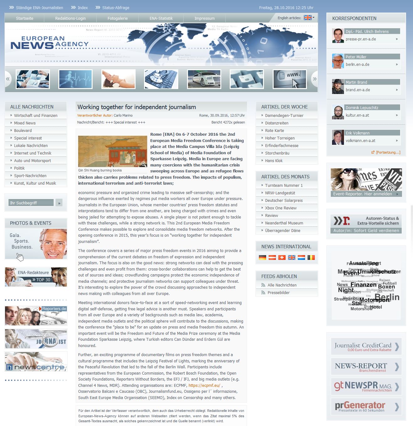 Articolo di lancio della conferenza ECPMF 2016 a Lipsia alla quale ha partecipato Chiara Sighele, European News Agency 30/09/2016