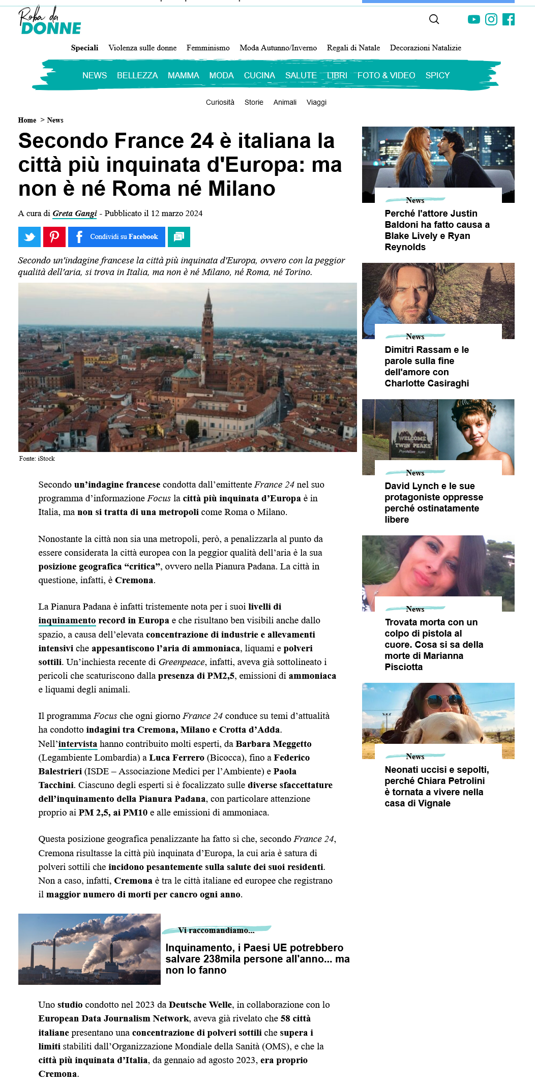 Articolo con dati ripresi dal lavoro collaborativo EDJNet sull’inquinamento delle città in Europa, Roba da Donne 12/03/2024